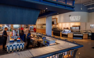 Spanning 13,000 square feet in University City at Schuylkill Yards, Gather Food Hall is a community centered space in our founding city of Philadelphia that invites people to connect around great food while addressing an urgent and solvable problem: college food insecurity.